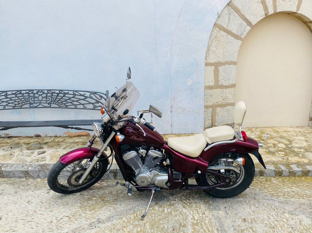 There go the bulls again, looming over the highway from their lofty hilltop vantage points. I acknowledge them but my focus is on maintaining a steady pace, not too fast, not too slow, and paying attention to how I’m feeling in the heat. After passing Lleida I make another pit stop. I’m no longer in the epicentre of the heat, and the temperature is a hot but tolerable 38 or so. I drink water and sit in the shade for a bit, letting the engine cool down, before saddling up one more time and heading out again. By the time I reach the coast, the temperature has fallen to around 32C or so and I congratulate myself on surviving, this time, the most extreme heat I’ve ever ridden through to date, through planning, common sense, and keeping a cool head, as it were, literally.
