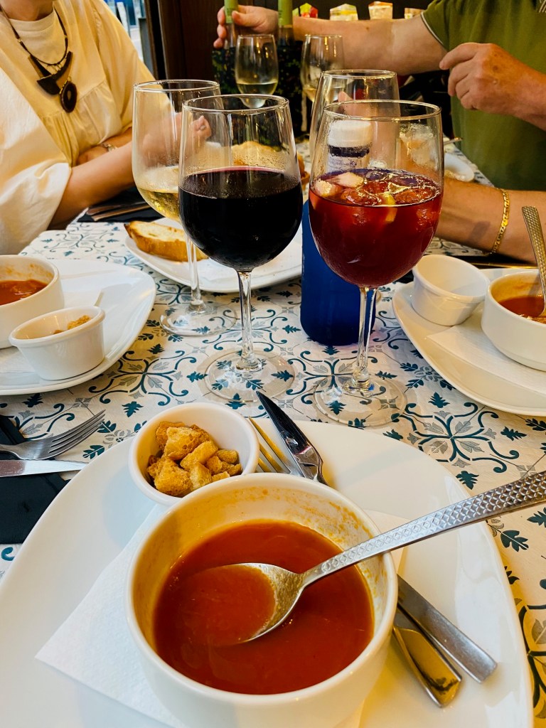 My wife flies out from England to meet with me and the family. This is the first time I’ve seen her in several weeks and her presence makes me very very happy. A few days fly by, and are spent mostly swimming and eating tapas. Our host turns out to be a wine connoisseur and tells us a lot about various Spanish wines.